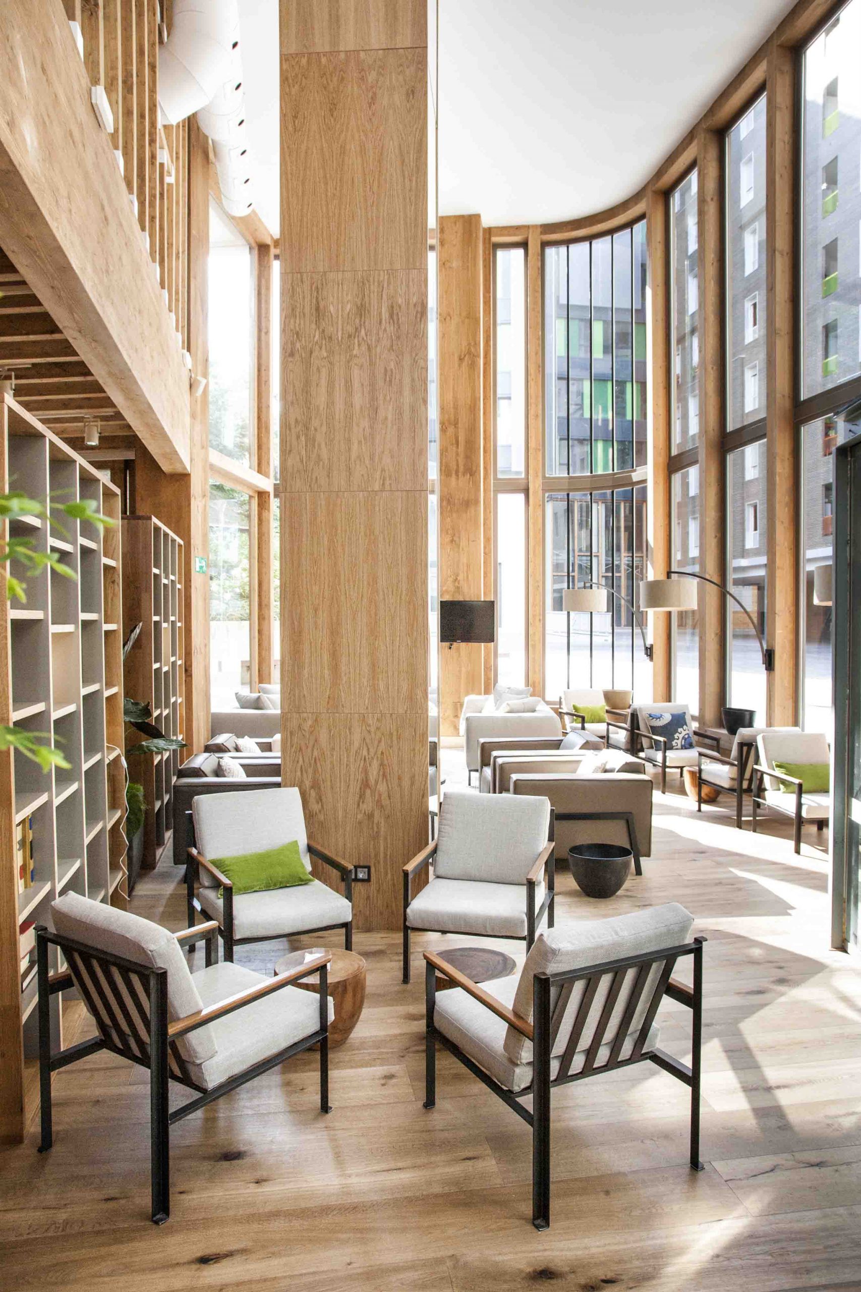 Located in the Amara district, Zenit Donostia combines functionality and warmth through a carefully curated use of wood, natural light, and soft textures. The interiors create a sense of calm with neutral tones and timeless materials, while modern touches ensure comfort and efficiency. From the light-filled lobby to the rooftop solarium overlooking the city, every space is designed to enhance the guest experience through clarity, openness, and subtle elegance.